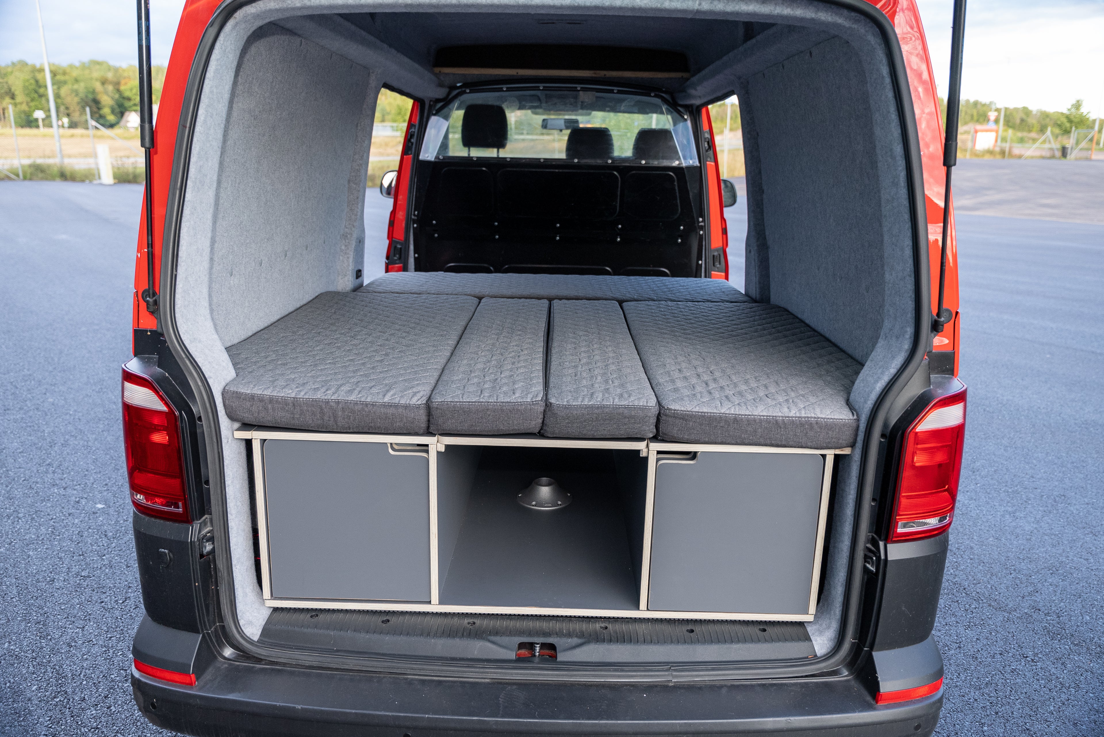 Innredningskit som kan enkelt tas ut og inn av bilen ved behov. Denne møbelmodellen passer de fleste varebiler. Se mer om denne og andre innredninger vi tilbyr!